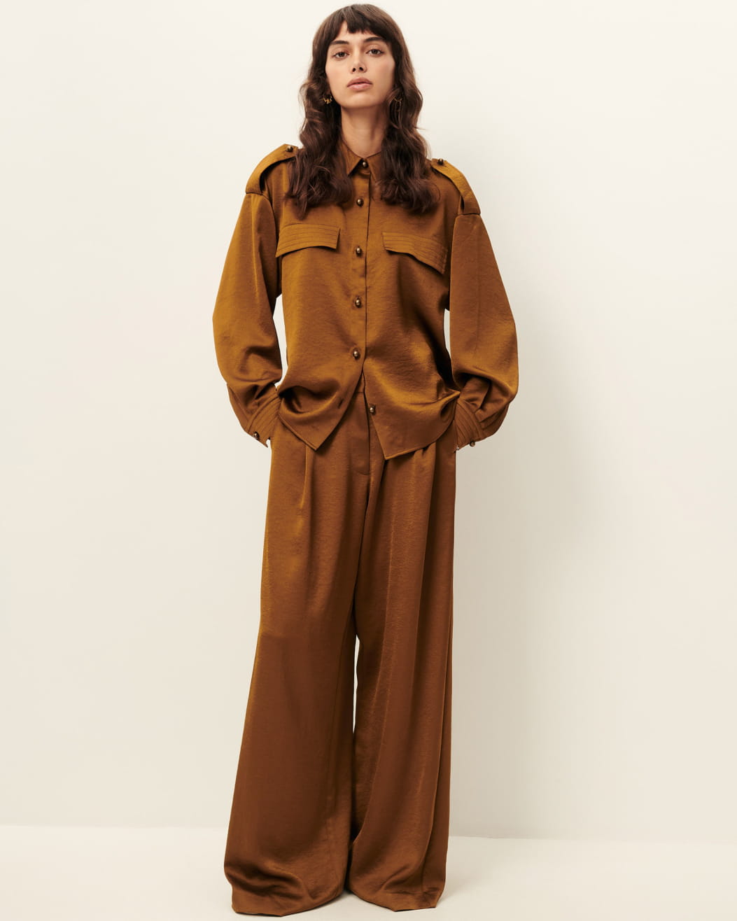 Taille haute, coupe ample ou volumes raccourcis, nos pantalons déclinent leurs matières délicates et leurs motifs exclusifs pour vous accompagner à chaque occasion.