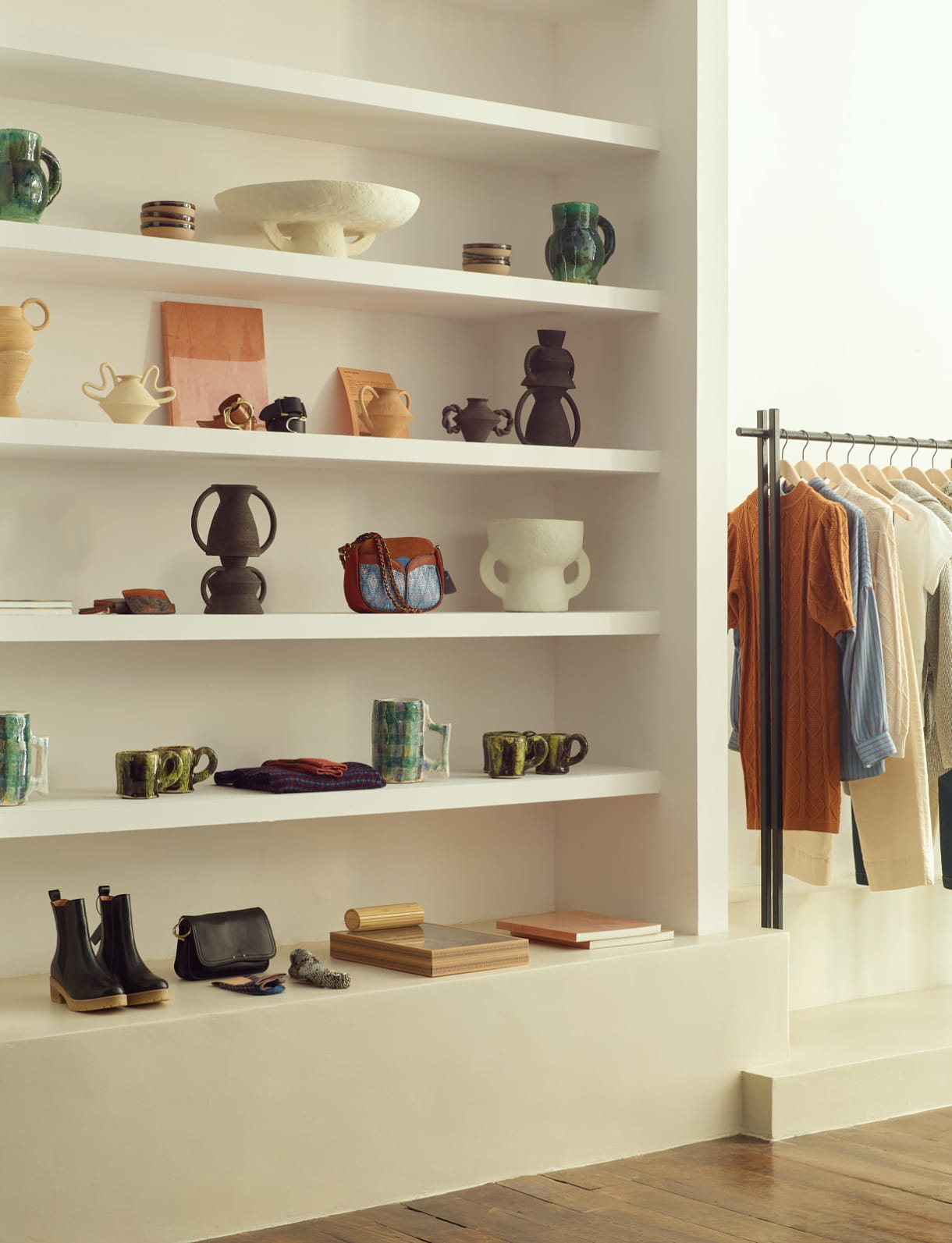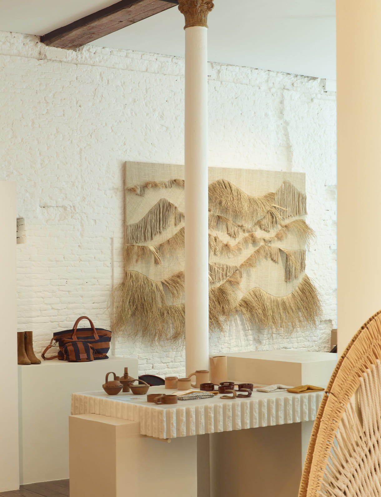 L'intention du projet qui nous a le plus inspiré, née de l'essence même de Sessùn en tant que marque engagée en faveur de l'artisanat, était de donner un espace à la fois à ses collections propres ainsi qu'à différents artistes pour exposer leurs œuvres. Cela donne lieu à la création d’une atmosphère libre comme celle que l'on peut trouver dans un atelier : un espace où la créativité et les différents talents peuvent se rencontrer.