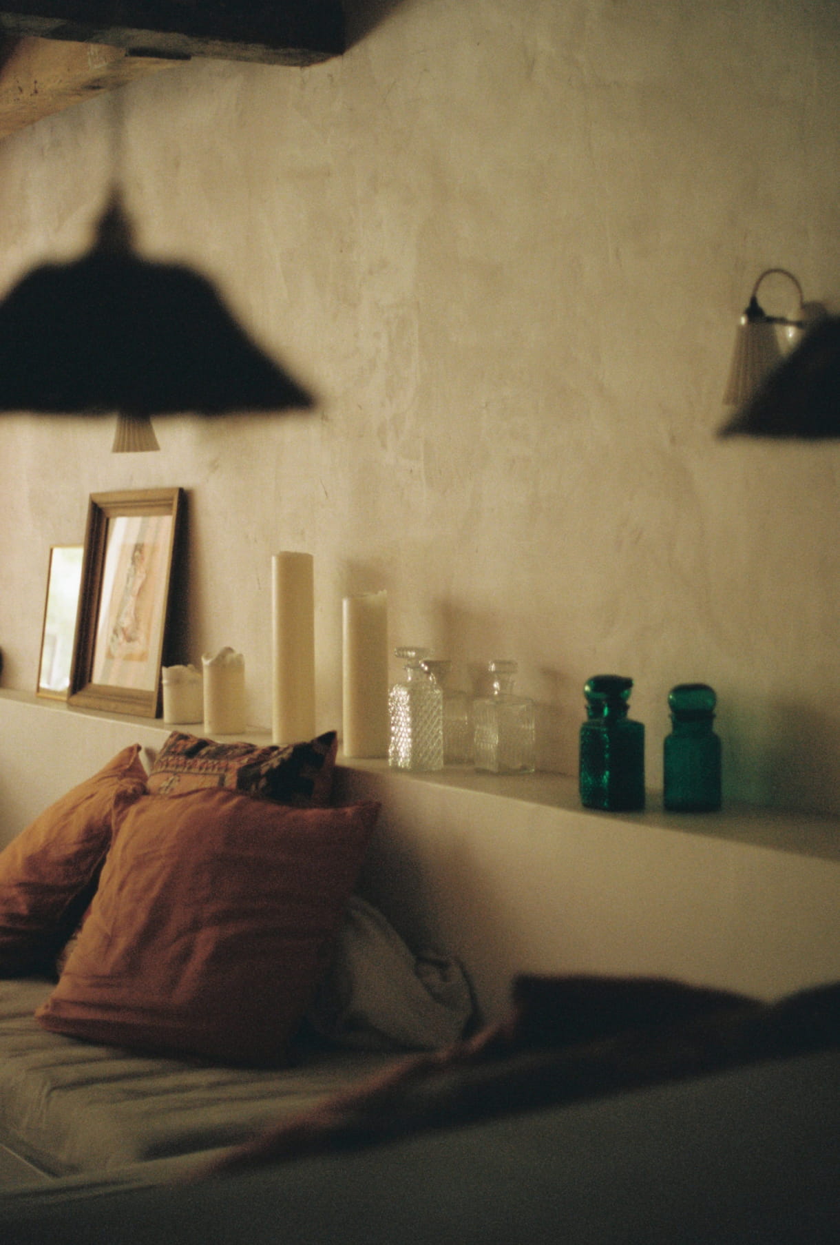 Le mas de ma mère, les cabanons de pierres sèches abandonnés au milieu des terres de mon enfance ou encore l’œuvre architecturale si juste de César Manrique à Lanzarote. Je me laisse guider par les éléments architecturaux authentiques trouvés sur place, je ne jette rien, je réintègre tout. Mon grand-père fabriquait un banc avec deux pierres et une planche récupérée dans le hangar. Je crois que je fais un peu pareil… Pour le choix hétéroclite des objets, je me laisse guider par ce que je déniche dans les déballages de la région. La brocante est mon éternelle addiction.