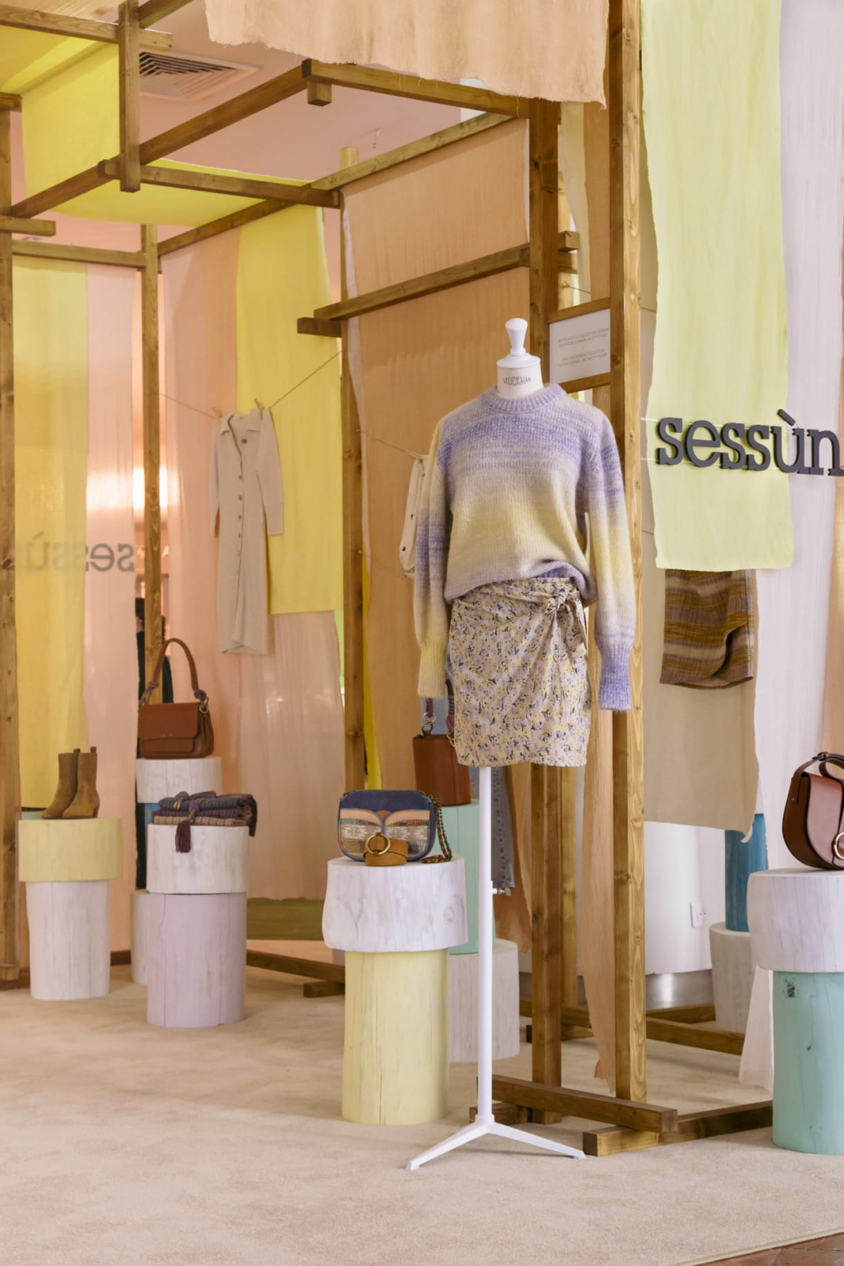 Dans un pop-up conçu comme une installation artistique entremêlant les créations de la marque et des suspensions de tissus teints, Sessùn dévoile son univers poétique et sensible, profondément lié à la couleur et aux techniques artisanales de teinture sur tissu.