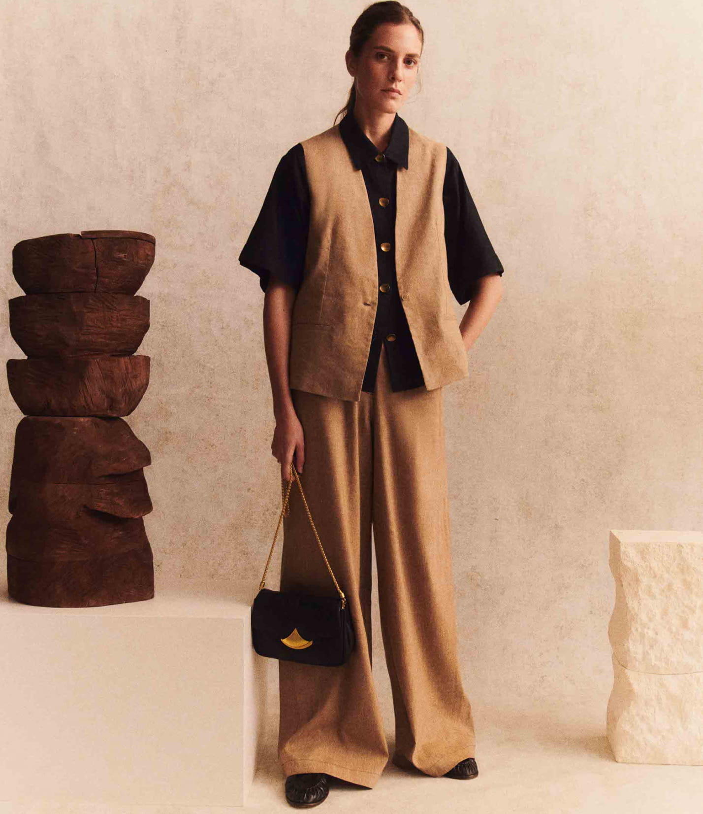 Du pantalon masculin à la chemise à rayures, de l’ensemble aux mocassins, la marque s’imprègne des grands classiques pour les adapter à de nouvelles façons de travailler, créant ainsi des modèles oscillant entre lignes pures et détails ouvragés.