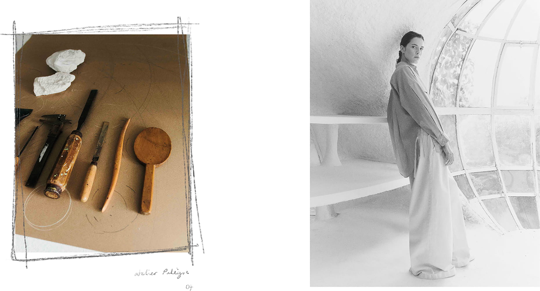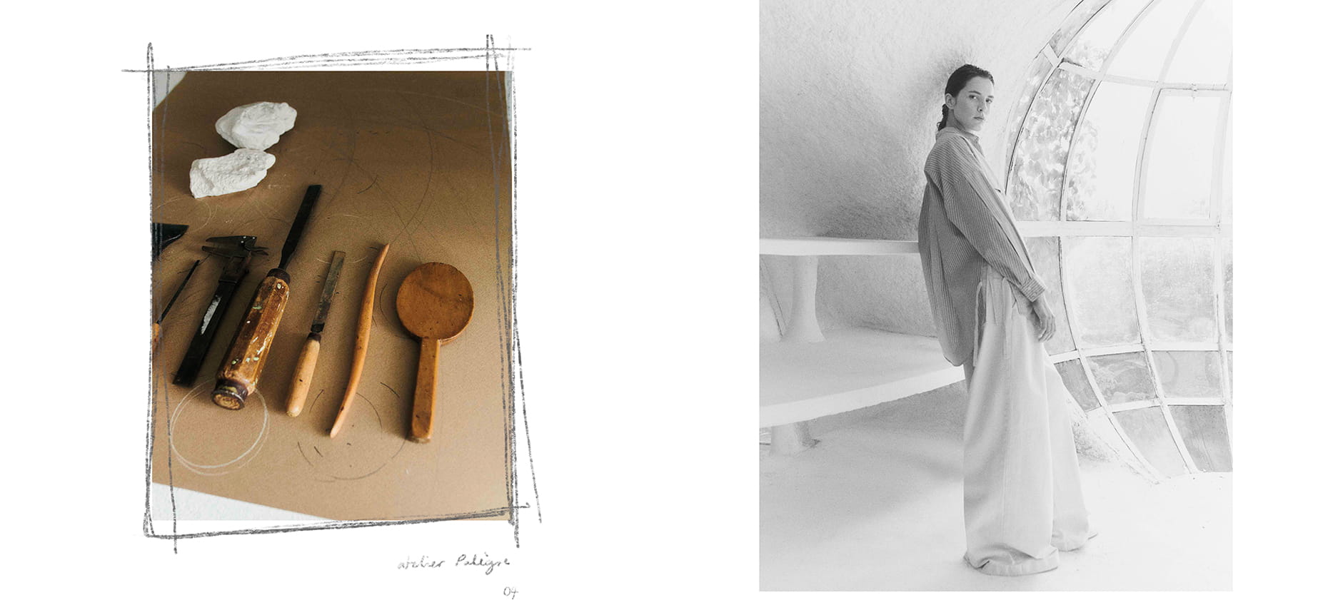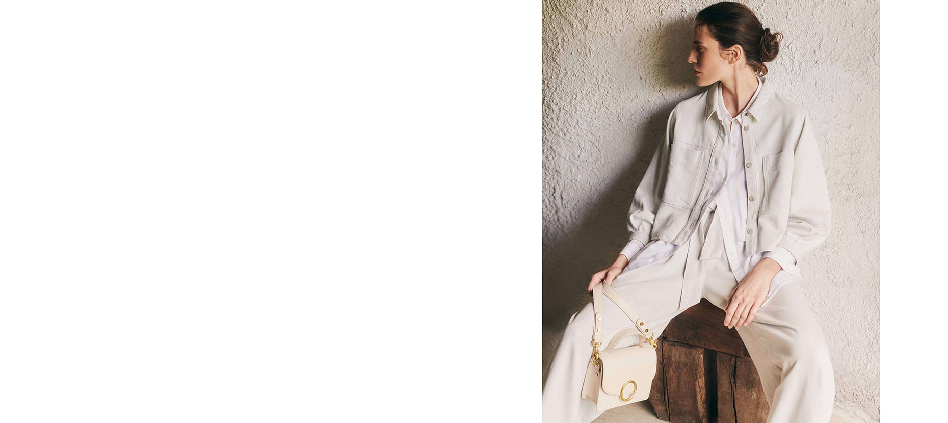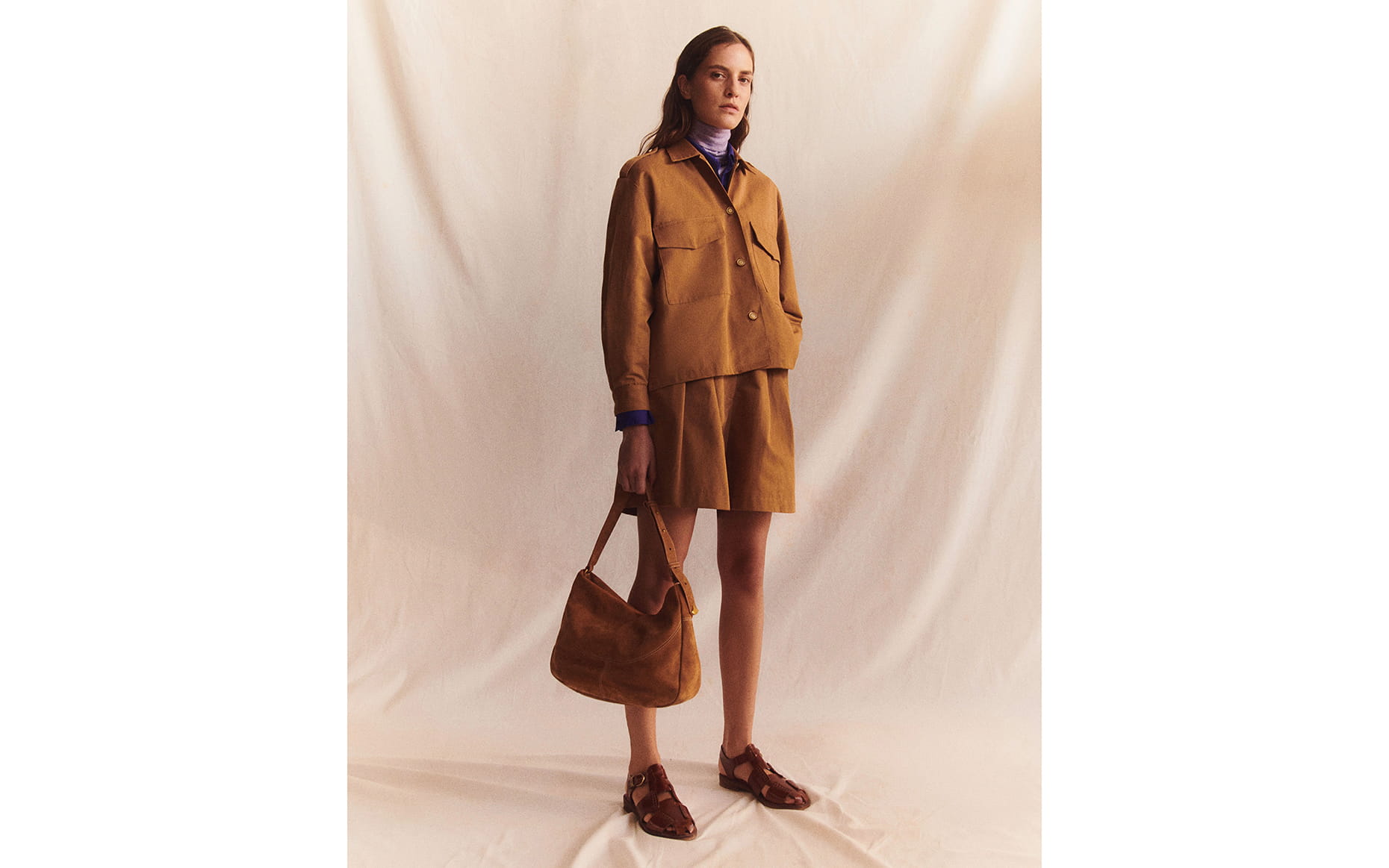 Des vêtements d’atelier et du workwear, depuis toujours chers à la marque, est captée l’élégance épurée, le design fonctionnel et les détails stylistiques évoquant la beauté de créer. Vareuse, blouse de peintre, ensemble à poches se réinventent dans des mélanges de lin et de matières naturelles, des écrus ou des teintures végétales.
