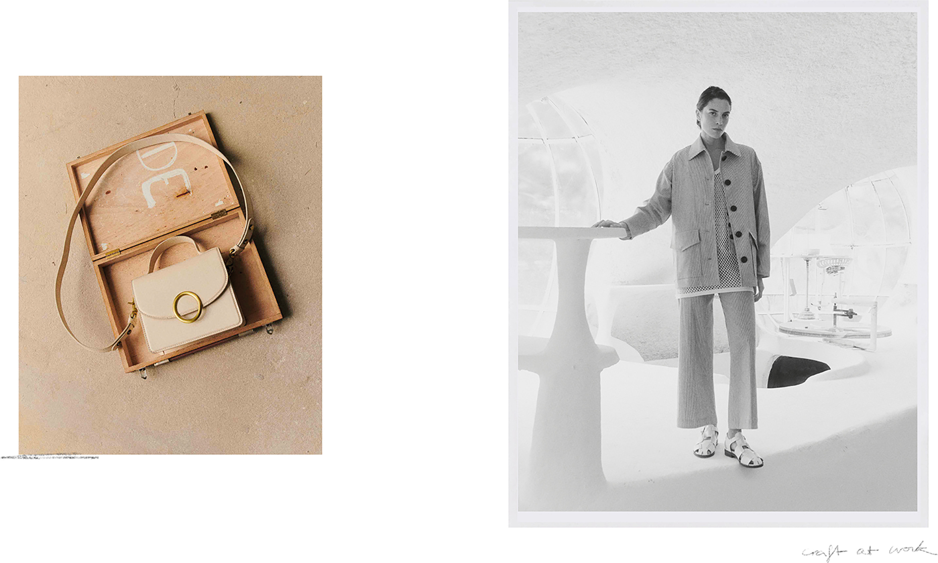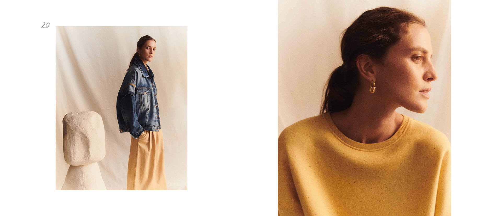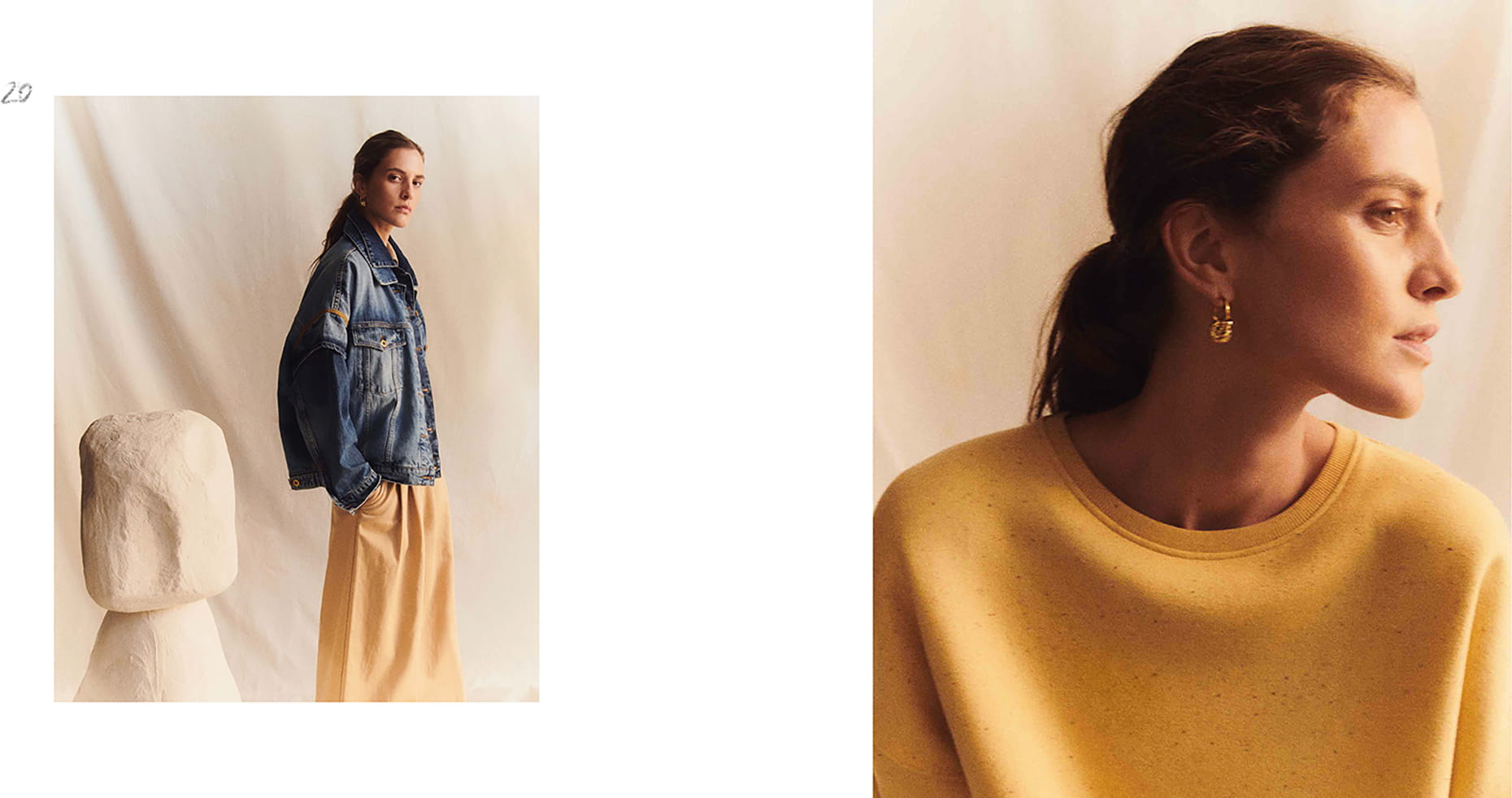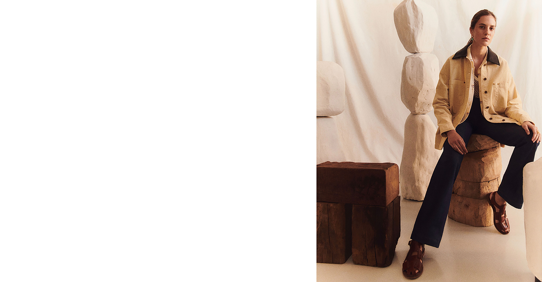 Des vêtements d’atelier et du workwear, depuis toujours chers à la marque, est captée l’élégance épurée, le design fonctionnel et les détails stylistiques évoquant la beauté de créer. Vareuse, blouse de peintre, ensemble à poches se réinventent dans des mélanges de lin et de matières naturelles, des écrus ou des teintures végétales.