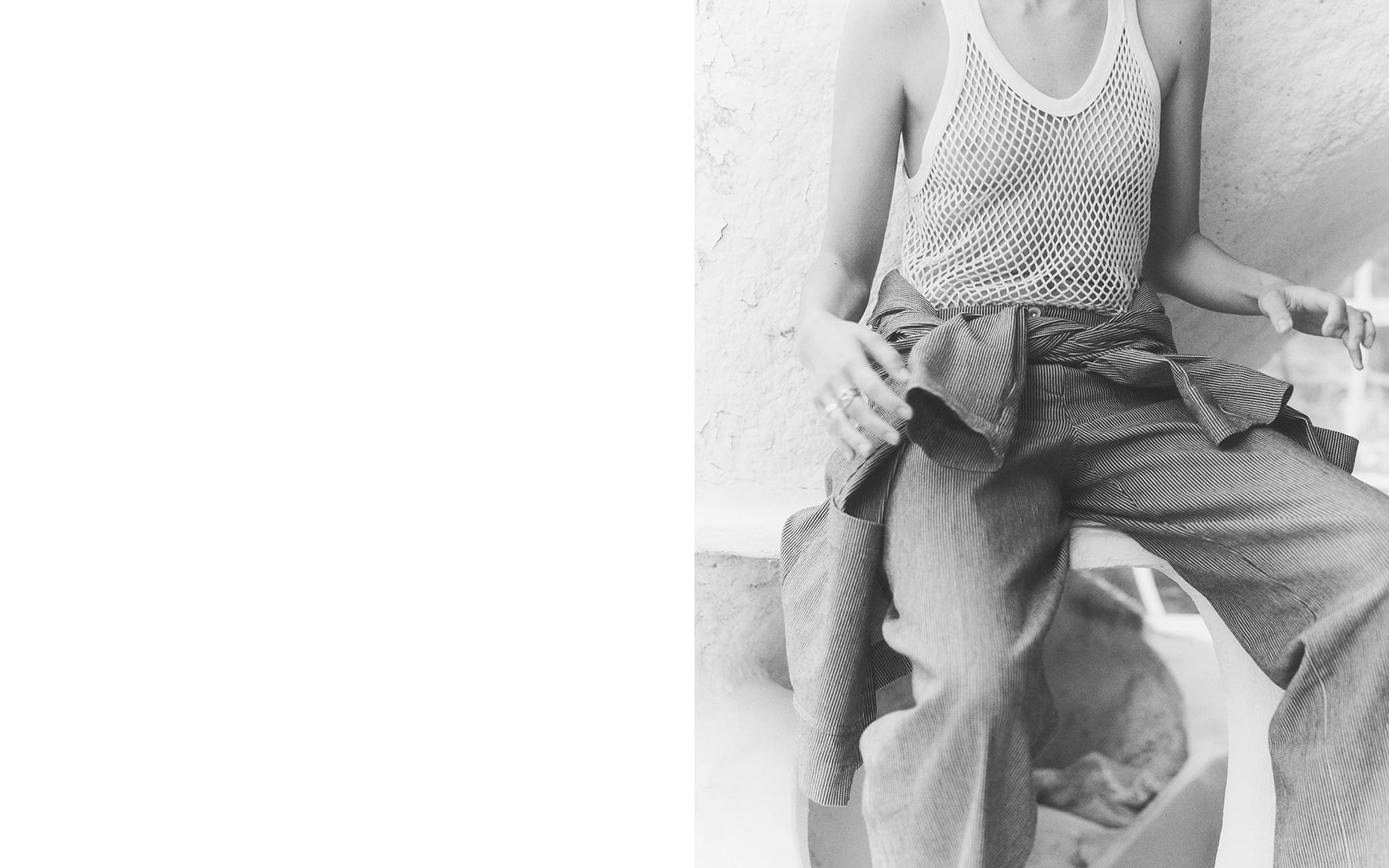 Sessùn continue de sillonner les chemins du beau et du travail de la main pour revisiter le vestiaire de bureau en faisant dialoguer la féminité de modèles tailoring au design fonctionnel des vêtements d’atelier.