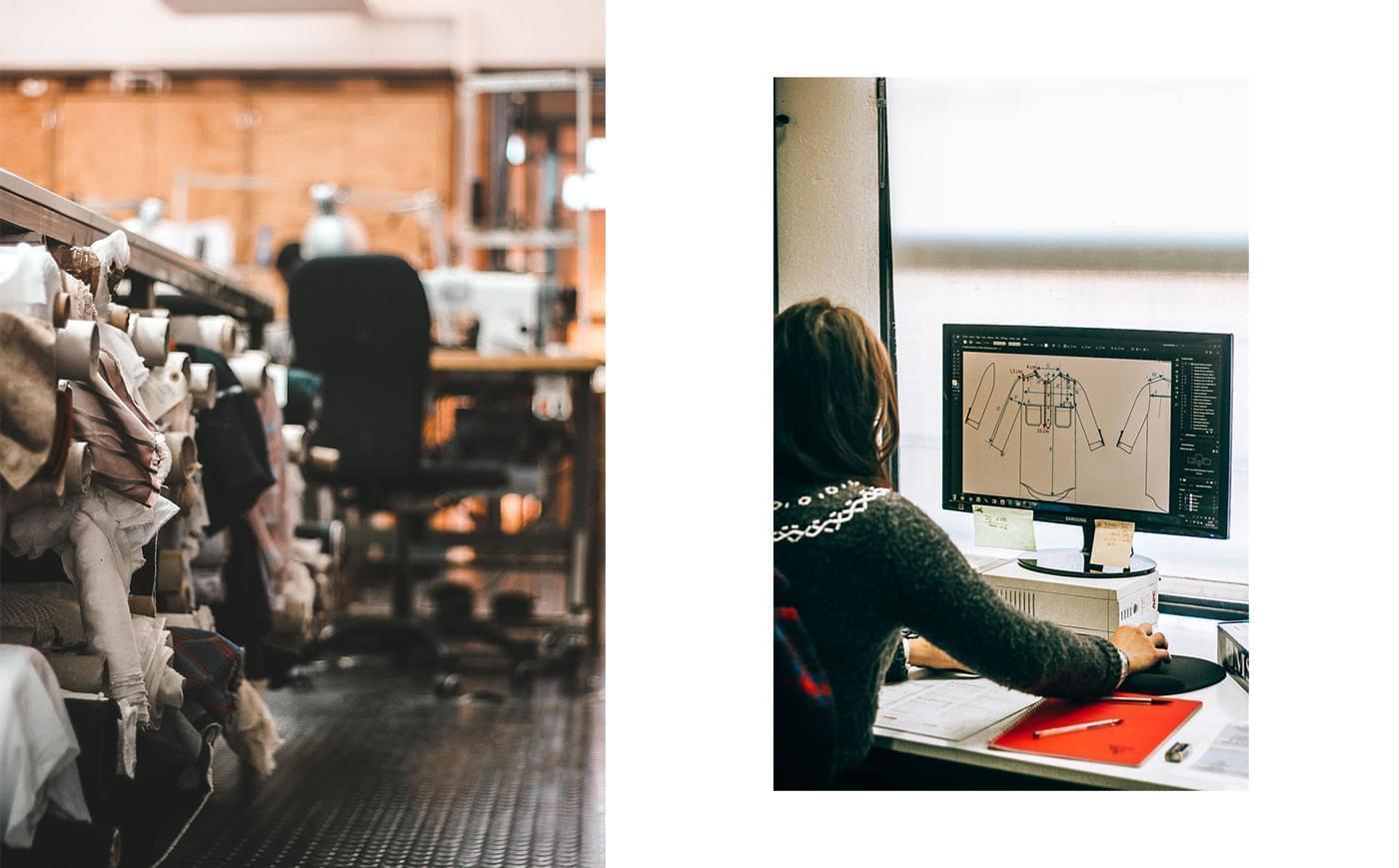 Parce que rien n’est plus important que de pouvoir développer nos patrons nous-mêmes, nous avons depuis toujours notre propre atelier de confection en interne. Une équipe de 5 personnes y travaille en permanence à la fois au prototypage, au patronage et à la confection de nos modèles.